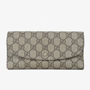 Gucci Brown Ivory GG Supreme Monogram Continental Wallet