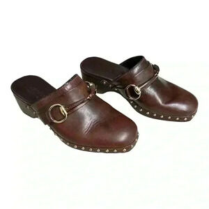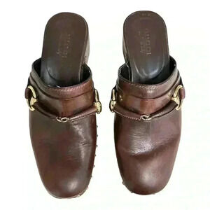 Gucci Brown Leather Mules/ Clogs With Gold Horsebit