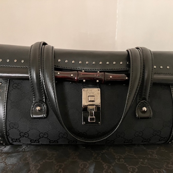 Vintage Gucci Bullet Bag, Tom Ford, excellent condition, studs, bamboo, leather and canvas logo, Made in Italy 🇮🇹