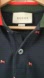 Gucci Dark Blue Polo Embroidered Shirt, Short Sleeves Red Green Striped Collar.L