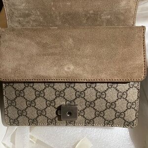 Gently used and in excellent condition. This bag has only been carried a couple of times and shows minimal to no signs of wear. The canvas, suede, and hardware are all well-preserved, making it a beautiful addition to any collection.