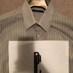 Men's Gucci striped dress shirt in size 42. Neck size 16 1/2. Made in Italy. Excellent condition.