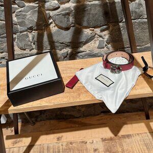 Please note that the belt was shortened by the previous owner. The original cut leather piece with Gucci stamps is included. The size indicated in this description refers to the belt after it was shortened. This is the current size and the one applicable for the next buyer.