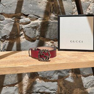 Gucci GG Burgundy Leather Crystal GG Buckle Belt