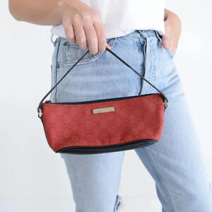 Gucci GG Canvas Red Boat Pochette Mini Bag Purse
