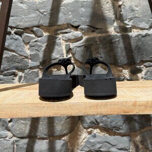Gucci GG Chevron Platform Thong Sandals. Thick black rubber platform sole. Chevron quilted texture. Smooth black rubber straps. Thong post with black enamel interlocking GG logo. Diamante textured outsole. Gucci stamp. Made in Italy. Come with Gucci dustbag.