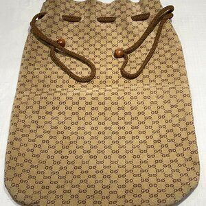 Gucci GG Drawstring Suede Bottle Cosmetic Bag Satchel Purse