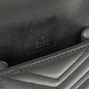 Made in Italy, this GG Marmont belt accessory from Gucci's 2017 Autumn and Winter collection is crafted in a black quilted leather, and is embellished on the front with insect-motif animal studs. It features aged gold-tone hardware, a snap closure strap to secure onto a belt, a heart on the back, and a front flap secured with a magnetic closure.