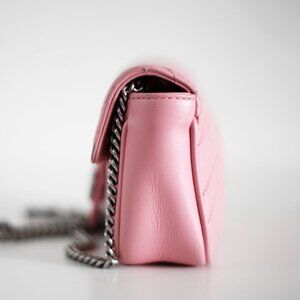 Gucci GG Marmont Super Mini Crossbody Bag/Wallet on Chain/WOC, Pink & Silver HW