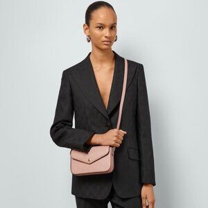 The iconic initials of founder Guccio Gucci continue to grace leather accessories, linking contemporary pieces to the brand’s rich heritage. In this mini shoulder bag, the signature GG motif adds depth through a play of texture and a glossy finish, all in a soft rose beige hue.