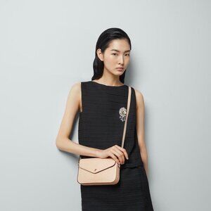 The iconic initials of founder Guccio Gucci continue to grace leather accessories, linking contemporary pieces to the brand’s rich heritage. In this mini shoulder bag, the signature GG motif adds depth through a play of texture and a glossy finish, all in a soft rose beige hue.