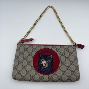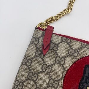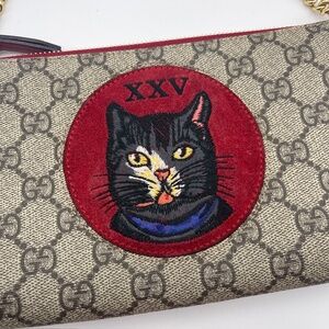 Gucci GG handbag Supreme Monogram Mystic Cat Embroidered Chain Wrist Wallet Red