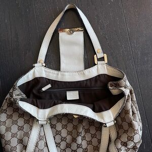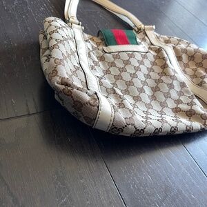 Gucci GG monogram Canvas leather Web beige/cream hobo Tote Bag classic