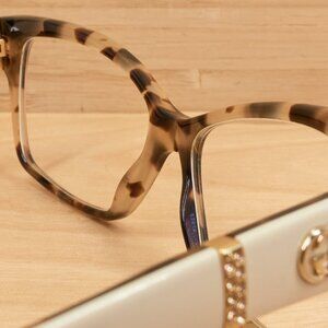 Authentic Gucci GG3559 L7B eyeglasses. Classic Havana tortoise front, ivory temples with gold GG logo and crystal detailing.