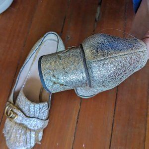 Gucci Galassia Platino Crackle Heels Marmont Loafers Gold size 40.5