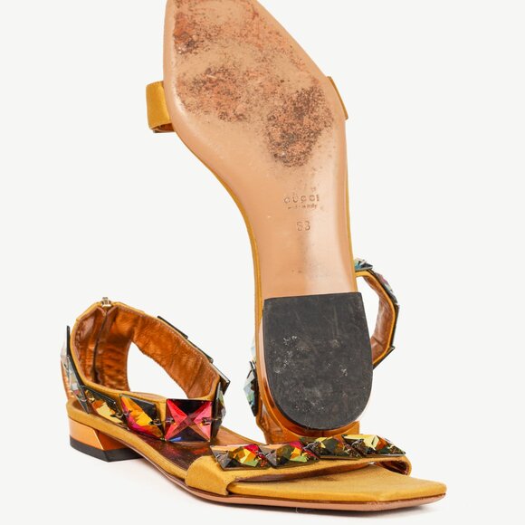 Gucci Gold Satin Jewel-Embellished Sandals