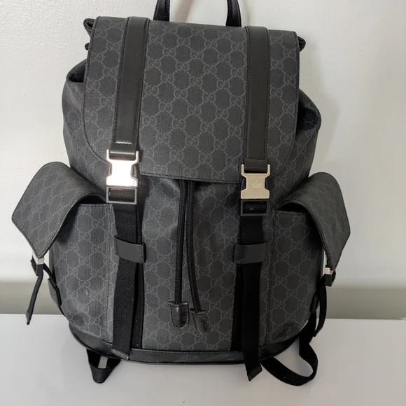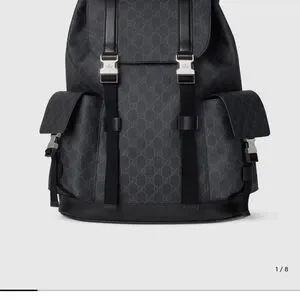 Elegant Gucci backpack with signature monogram. Features multiple pockets and sleek design. Lightly used, less than one year old. MINT condition.