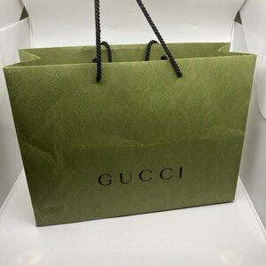 Gucci Green Paper Shopping Bag L With Handles 18.75 x 14 x 6.5 Damask