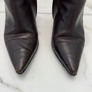 Gucci High Heel Boots Size 6B. Chocolate brown soft leather, 3 inch heels. Made in Italy. Gently used, scuff marks on heels and toe points. Sole protector added. Dust bag included.
