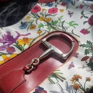 Floral print canvas with leather trim, intricate embroidery, and classic horsebit hardware