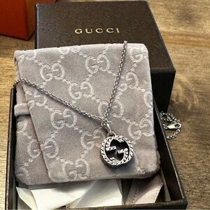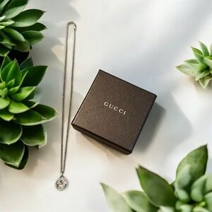 Elegant Gucci necklace featuring a stunning silver pendant. Perfect for adding a touch of luxury to any outfit.