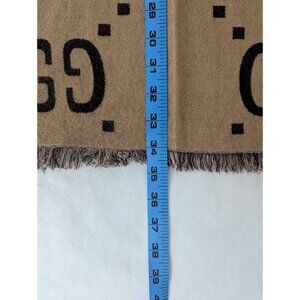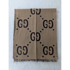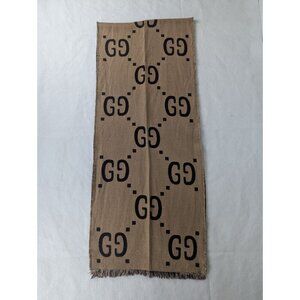 Gucci Jacquard GG Monogram Pattern Wool Silk Scarf Brown/Beige Made in Italy.