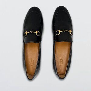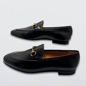 Gucci Jordaan Loafers Slip-on Style Horsebit Leather Lining Black Women's EU 41