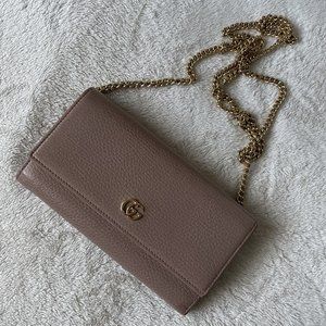 Gucci Marmont Leather Mini Leather Chain Bag in Beige/Nude