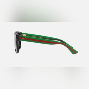 Frame Color: Black at the Front Red Green Striped on the Sides , Gucci Written on Both Temples, Frame Transparent on the Arms
