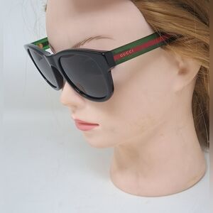 Gucci Men's Sunglasses Black Green Polarized Rectangle GG0003S 52mm 52-21-145