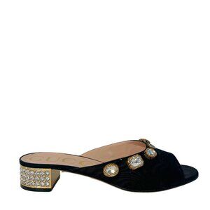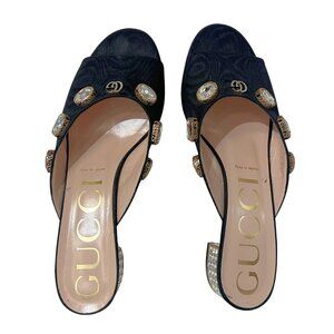 Gucci Moire Fabric Crystal Embellished Lyric Slide Sandals 39.5