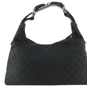 Gucci Monogram GG Black Horsebit handle Canvas Material Hobo Bag large