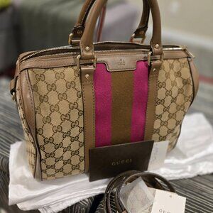 Gucci Monogram Vintage Web Medium Boston Purple Brown