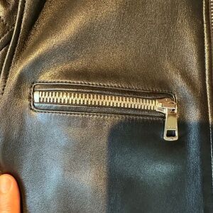 This fabulous jacket is from the flagship Gucci store on Via Candotti in Rome. I've decided to let it go so that someone else can love it as much as I have! It's in good pre-loved condition. The leather is EXCELLENT — heavy but so supple and gorgeous and the quality you would expect from Gucci. The leather is in great condition. The zippers (all marked GUCCI) have a few scratches but are in great working order. As you can see in the photos, the red cotton lining has some black marks on the collar and cuffs; I think there was a bit of dye transfer from the leather. This is not visible when the jacket is on. There are two chest pockets and two hand pockets. There are zippers at the cuffs and ties in the back. The back of the shoulders has this great accordion-like leather for ease of movement. There are grommets in the armpits for ventilation. Two-way zipper. You will get up to all kinds of bad-assery in this jacket! This is an Italian size 44. I hate how Postmark puts "European" sizes, since French and Italian are different! I would say that this jacket is equivalent to a US size 8 or 10. Original Gucci-branded hanger and dust jacket included.