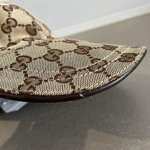 This baseball cap from Gucci is made with a sturdy weave in a Natural beige monogram pattern, and features a black leather button on top, a classic six-panel design, a wide curved brim, an adjustable leather velcro strap at the back, the label’s instantly recognisable green and red stripes at the sides, and is lined in a dark brown cotton and tonal ribbon.