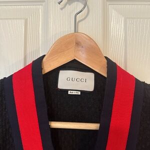 Gucci Navy Cardigan with Red Trim