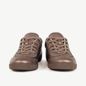 Composition: Coated canvas and leather upper, leather lining, rubber outsoles.