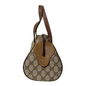 This chic shoulder bag is crafted of Gucci GG monogram canvas with a trim of brown leather. The bag features classic gold-tone hardware and dual leather top handles. The top zipper opens to a spacious fabric interior.