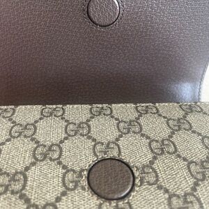 Details: Beige and ebony GG Supreme canvas with gold-tone hardware