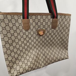 Gucci Plus vintage bag from the 70s. Please note that this bag is 100% authentic, but does not have a code as most designers began using codes in the 90s. Also, Gucci Plus was created as a subline from one of the sons. Beautiful unique piece with cherry line straps.