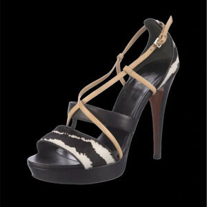 Gucci Pony hair printed stilettos heels sandals Sz 10