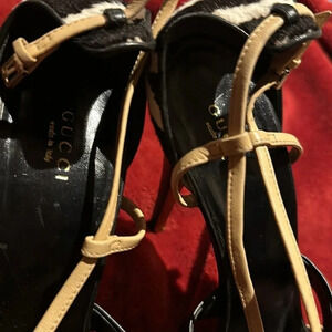 Gucci Pony hair printed stilettos heels sandals Sz 10