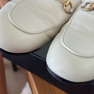 Gucci Princeton mules in cream colour. Size 6. Has some wear throughout. Comes with original box.