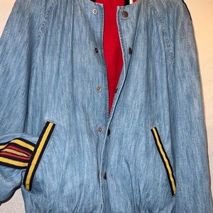 This jacket is an easy to wear & bold, lightweight bomber made in chambray denim!