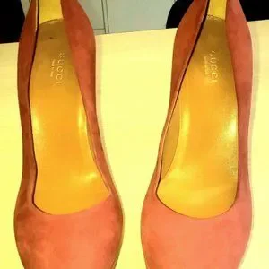 Gucci 37 1/2 (size 6) Suede heels with leather. Lightly used. Please see photos no scuffs or marks these are like new.