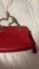 Authentic red Gucci leather bag. Features gold chain straps. Iconic Gucci logo embossed.