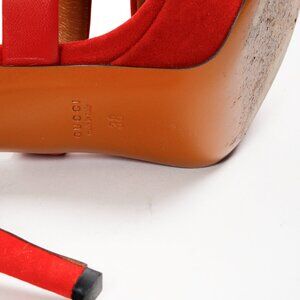 Gucci Red Suede Criss Cross Strappy Platform Sandal Pumps