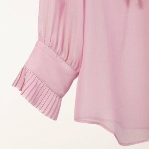 Gucci Resort 2016 Pink Silk Pleated Ruffle Tie-Neck Shirt