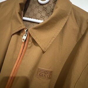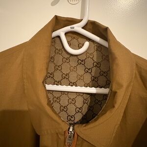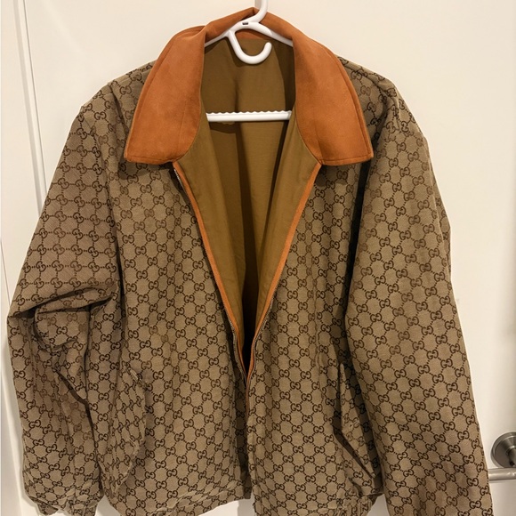 Stylish Gucci jacket with iconic logo pattern.