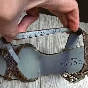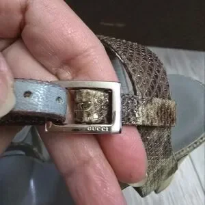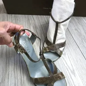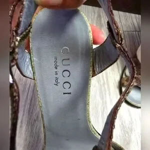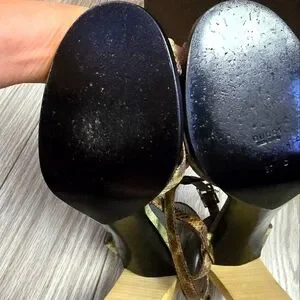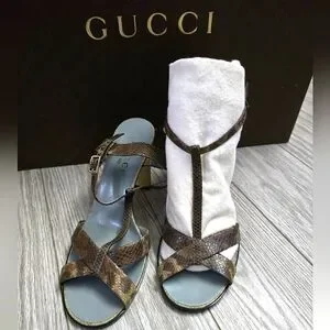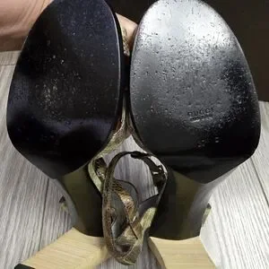 Excellent condition Gucci snake skin sandal with bamboo heel.